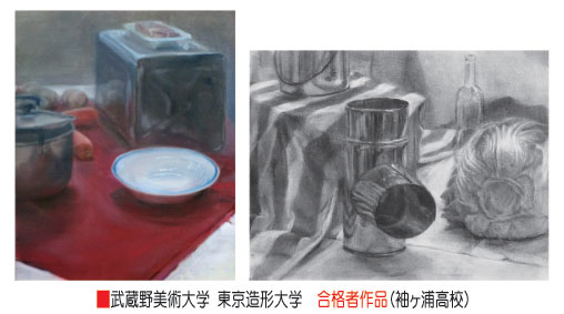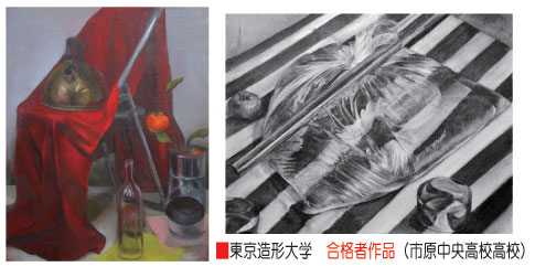 東京芸術大学、武蔵野美術大学、多摩美術大学、東京造形大学、女子美術大学を受験される方を主な対象として、本試験を視野に入れた課題を行いながら、制作時間と完成度を考慮し、個々の表現力、実践力を伸ばすことを重視する近年の入試に対応できる力を養います。
